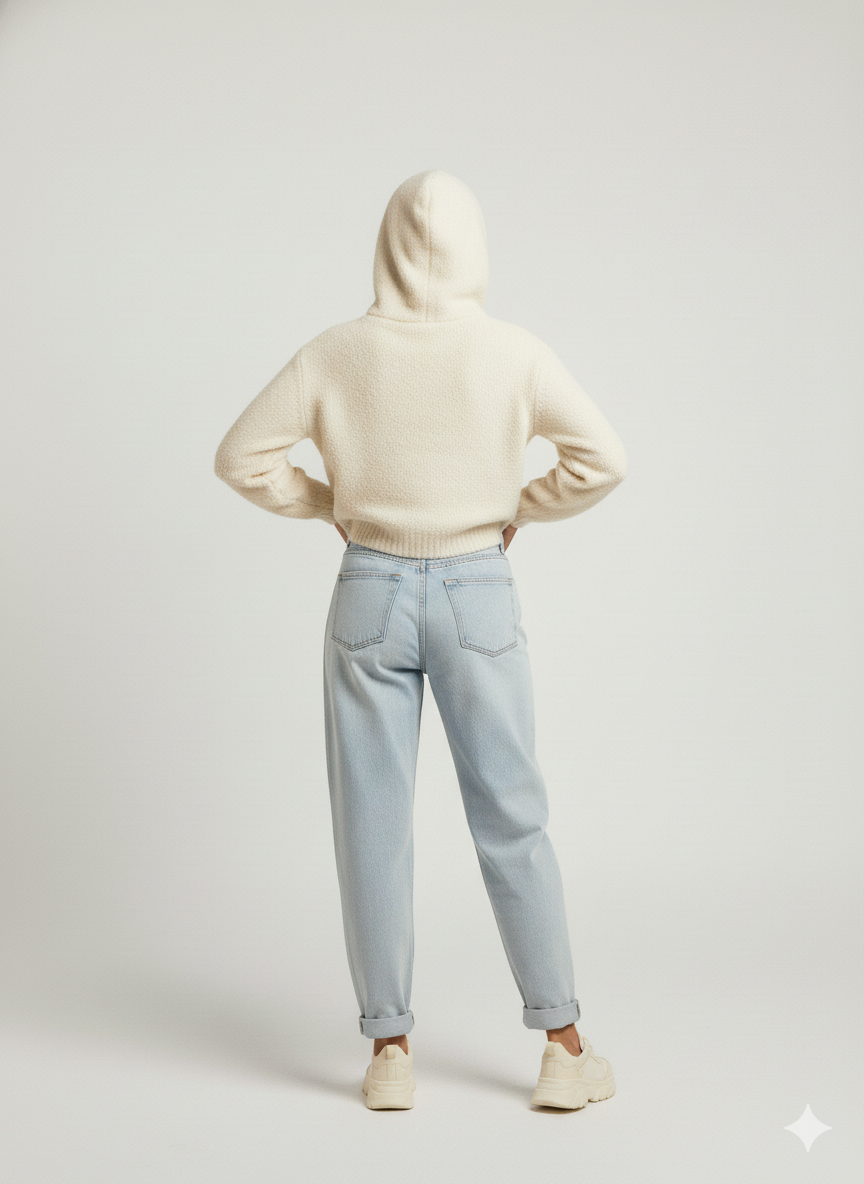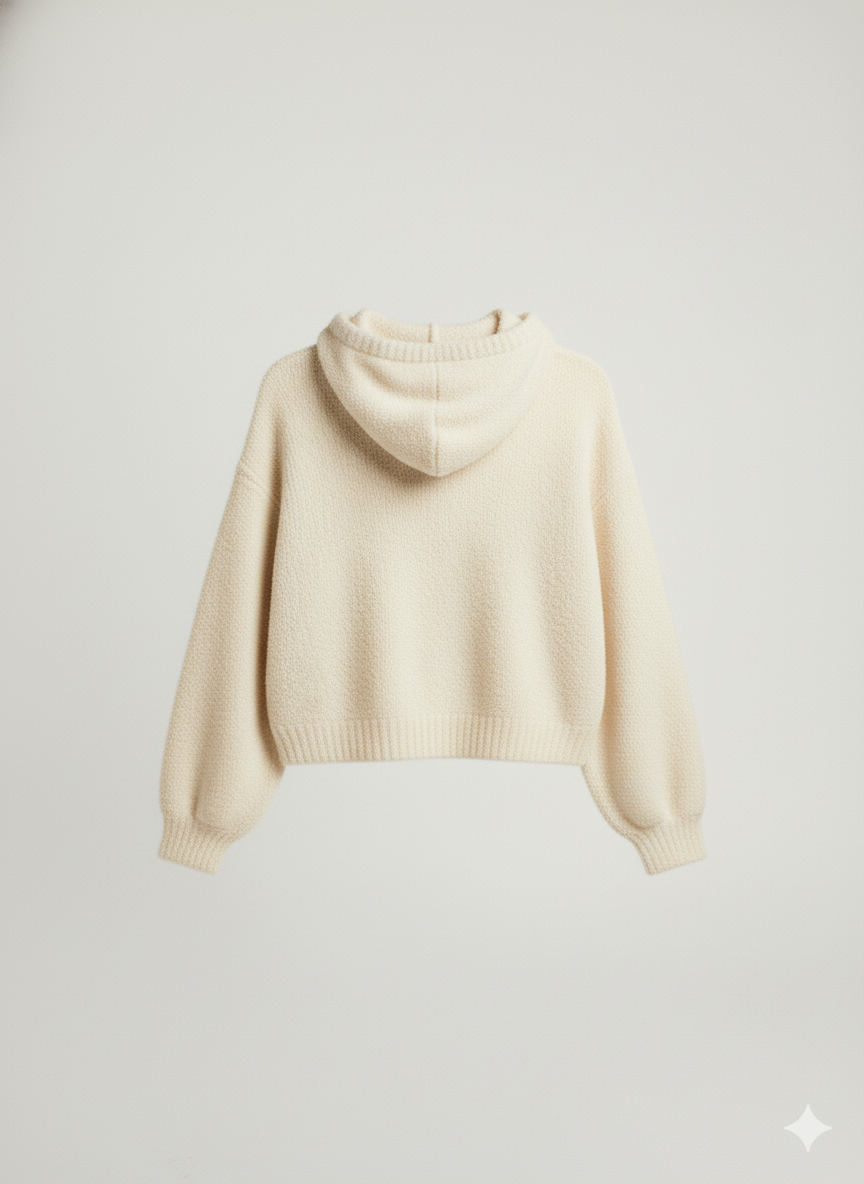 A premium textured knit hoodie designed for elevated casual and winter layering use cases. Featuring a soft-touch fabric, adjustable drawstring hood, and relaxed cropped silhouette, this style delivers a refined balance between comfort, warmth, and contemporary aesthetics. Built for repeat wear and lifestyle versatility.