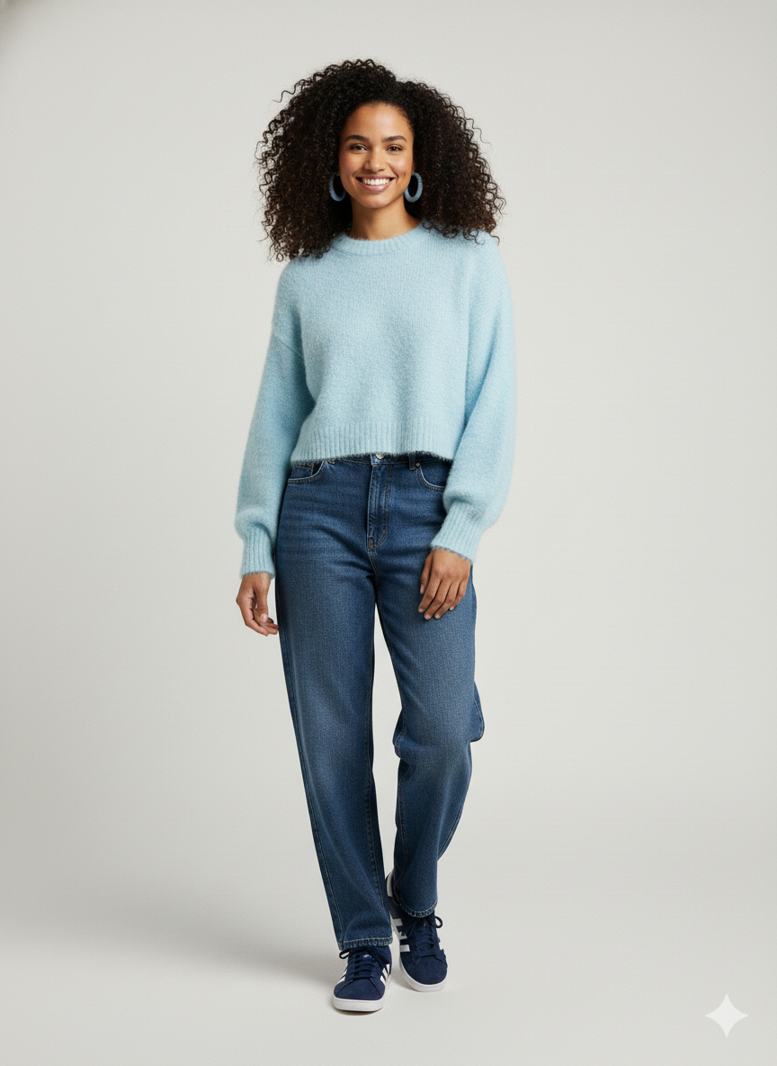 A contemporary cropped knit sweater designed with statement balloon sleeves to elevate everyday styling. Crafted in a soft-texture knit with a clean crew neckline and ribbed hem, this piece delivers a strong balance of comfort, visual volume, and trend relevance. Positioned for casual wear, winter layering, and high-rotation seasonal demand.