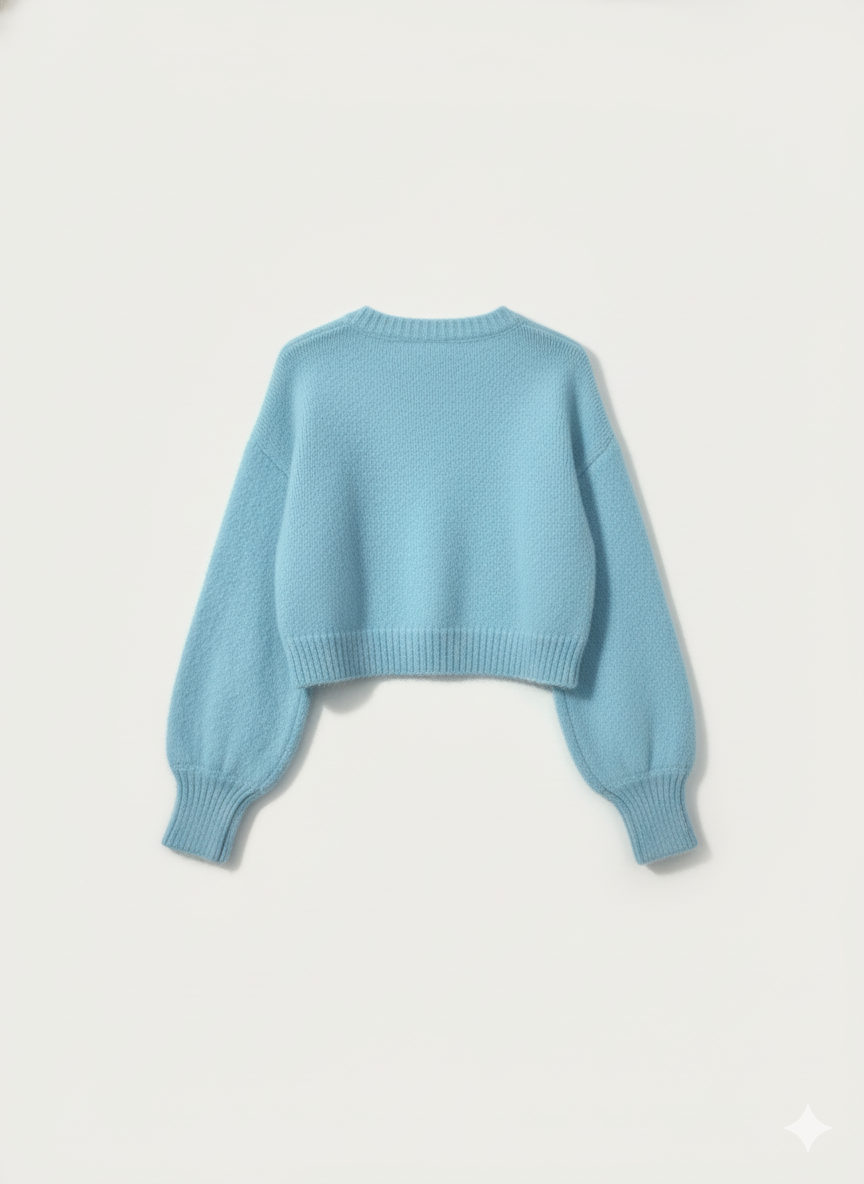 Women’s Sky Blue Cropped Knit Sweater with Balloon Sleeves